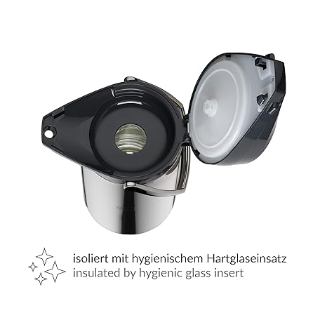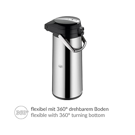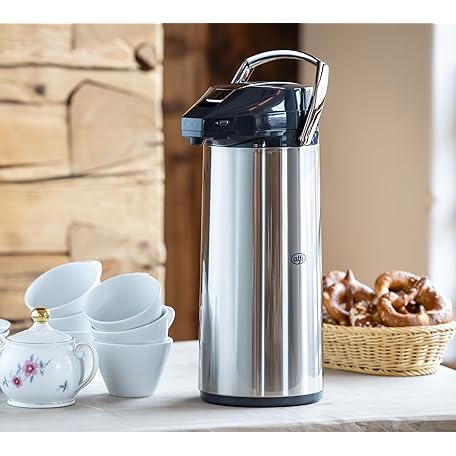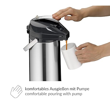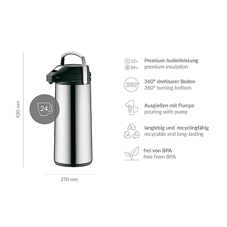 Thông tin sản phẩm alfi Drinks Dispenser, 3 Litres, Polished Stainless Steel Pump Jug with Tempered Glass Insert, Integrated Pump, Keeps Warm for 12 Hours, Cold for 24 Hours, 24 Cups, 360° Rotating Base, Ideal for