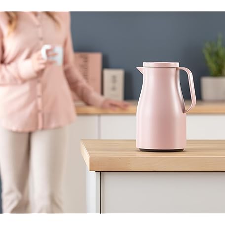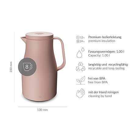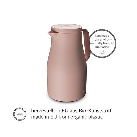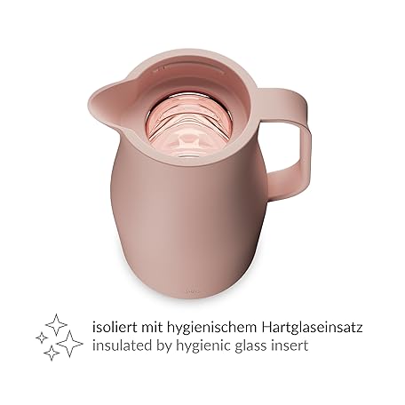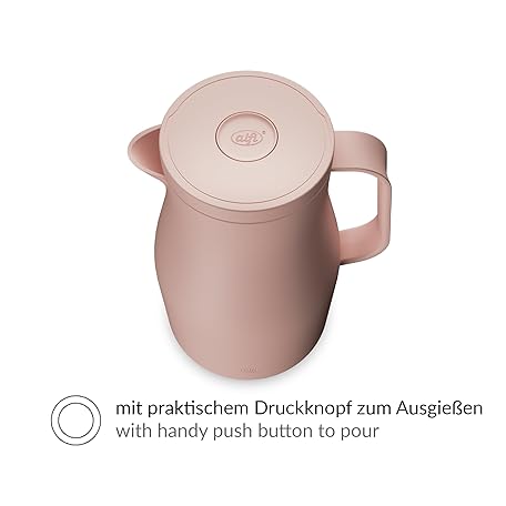 Thông tin sản phẩm alfi ECONSCIOUS 1.0 L, powder rose, insulated jug with hygienic tempered glass insert made of organic plastic, screw cap with push button, pouring with one hand, ideal as a coffee pot, teapot,