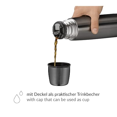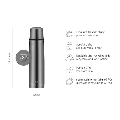Thông tin sản phẩm alfi ISOTHERM PERFECT AV 1.0 L, Cool Grey Matt, Stainless Steel Vacuum Flask with Drinking Cup, Completely Leak-Proof with Automatic Closure, Can Be Removed, Keeps Warm for 12 Hours, Fingerprints,