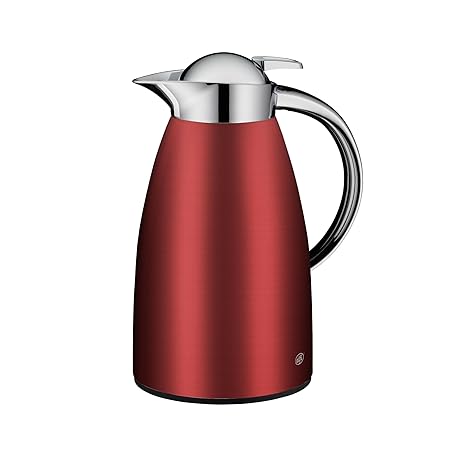 alfi Signo 1.0 L, satin red, stainless steel insulated jug with hygienic tempered glass insert, screw cap with comfortable push button, ergonomic handle, with one hand, ideal as a coffee pot, teapot