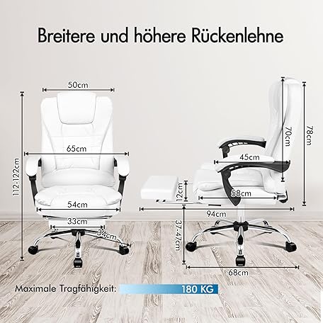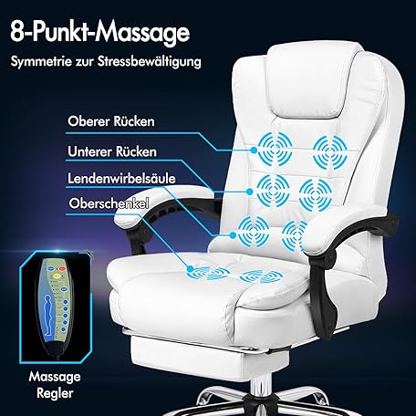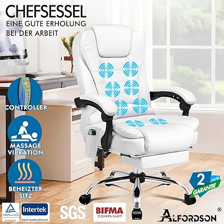 Thông tin sản phẩm ALFORDSON Office Chair with Ergonomic Lumbar Support, Desk Chair with Armrest and Backrest, Swivel Chair with Massage Function, PU Material, Height Adjustable, White, Faux Leather
