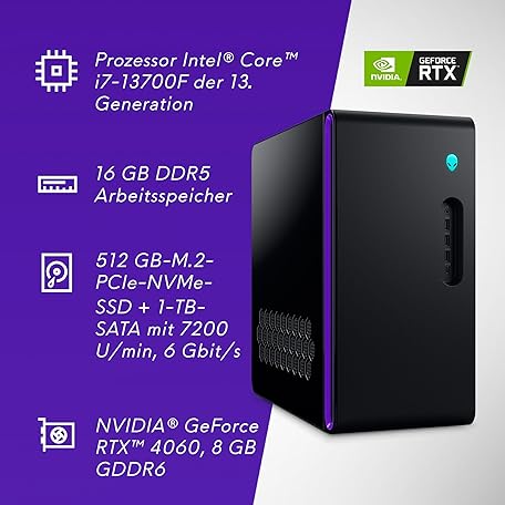 Sản phẩm Alienware Aurora R16 Gaming Desktop, 13th Gen Intel Core i7, 16Go RAM, Intel Wi-Fi 6, 512GB SSD, 1TB HDD, NVIDIA GeForce RTX 4060, Basalt Black đang được bán với giá ưu đãi là $2072.4933 tại nước Đức.