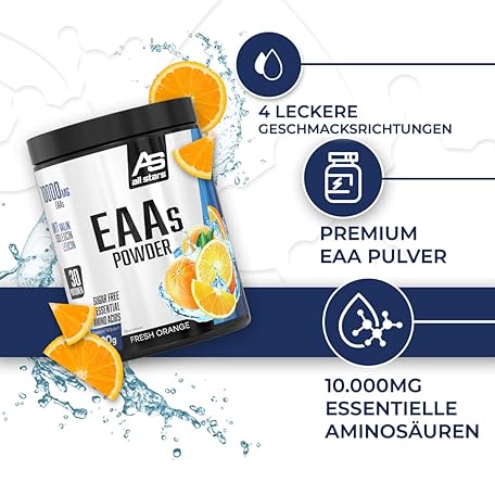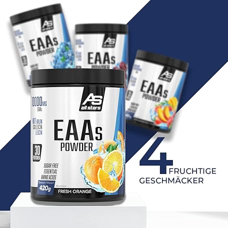 Sản phẩm All Stars EAA Powder Fresh Orange I Amino Acids High Dose I 420 g Powder with 10,000 mg EAAs per Serving I BCAA Supplement with L-Leucine + L-Valine + L-Isoleucine I Shake Sugar-Free đang được bán với giá ưu đãi là $29.321 tại nước Đức.