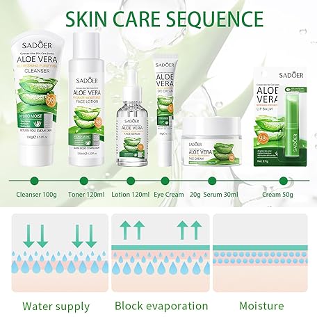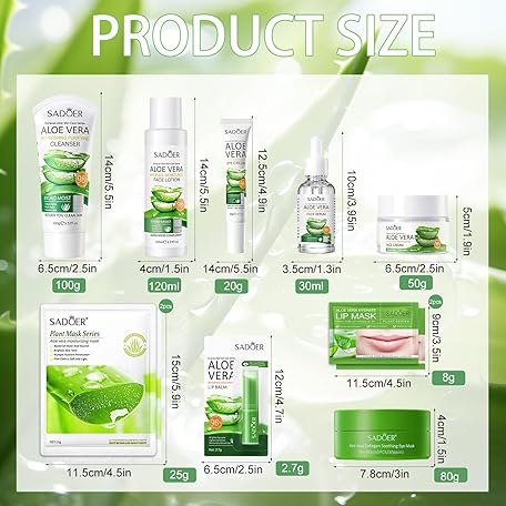 Thông tin sản phẩm Aloe Vera Hautpflege Set 11 Stück, Aloe Vera Gesichtspflege Set, Beauty Set Frauen mit Cleanser, Toner, Creme, Serum, Augenpads, Lippenbalsam, Maske, Skincare Set für Teenager Mädchen und Frauen