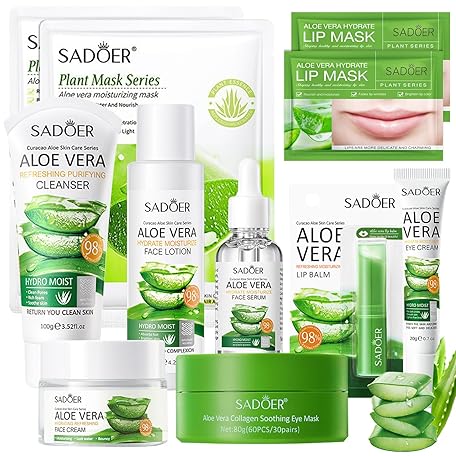 Sản phẩm Aloe Vera Hautpflege Set 11 Stück, Aloe Vera Gesichtspflege Set, Beauty Set Frauen mit Cleanser, Toner, Creme, Serum, Augenpads, Lippenbalsam, Maske, Skincare Set für Teenager Mädchen und Frauen đang được bán với giá ưu đãi là $23.9473 tại nước Đức.