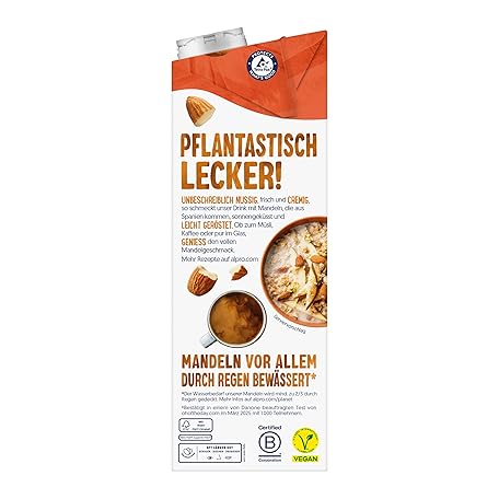 Thông tin sản phẩm Alpro Almond Drink Without Sugar, 8 x 1 L, Durable, Source of Calcium and Vitamins, Sugar-Free, Gluten-Free, Low Fat, Lactose, Vegan and Dairy Free
