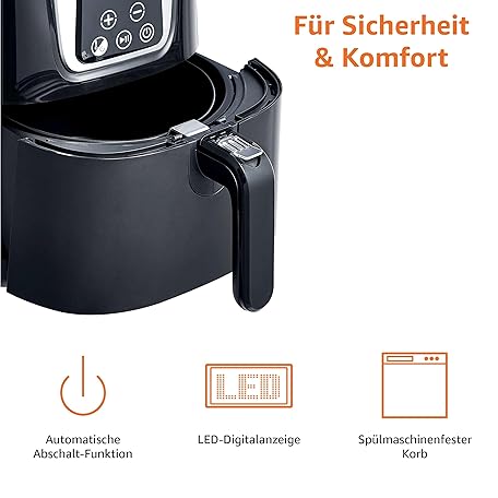 Sản phẩm Amazon Basics 4 Litre Compact Multi Function Digital Hot Air Fryer Black Chrome đang được bán với giá ưu đãi là $91.451 tại nước Đức.