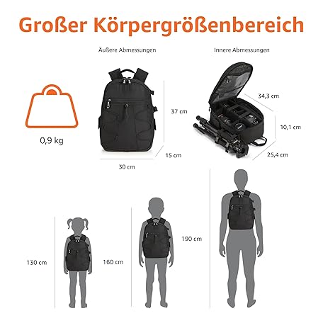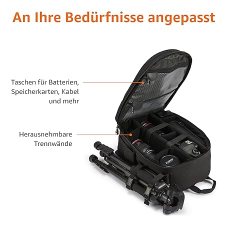 Thông tin sản phẩm Amazon Basics Amazon Basics Large Camera Backpack with Internal Padding for DSLR and Accessories, Waterproof and Shockproof, 30 x 15 x 37 cm, Plain Black