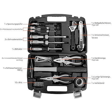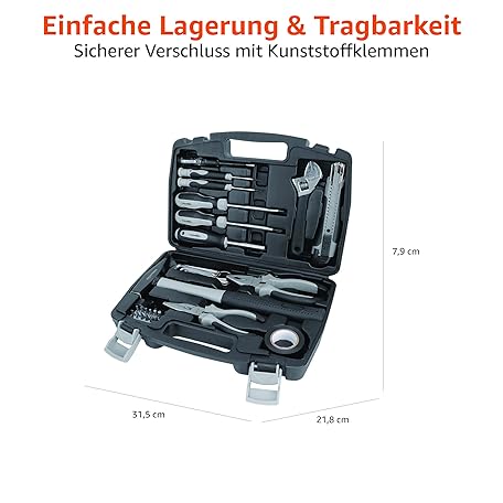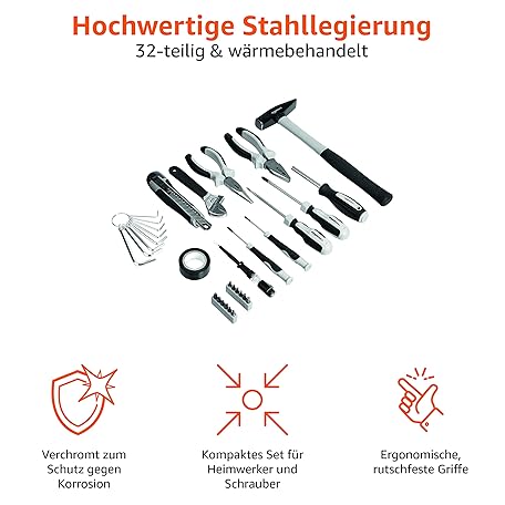 Sản phẩm Amazon Basics - Household tool set, 32 pieces đang được bán với giá ưu đãi là $24.307 tại nước Đức.