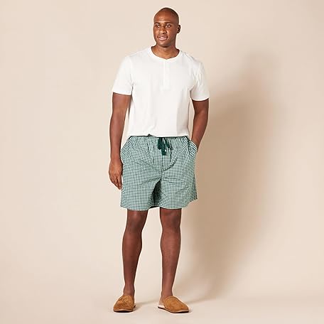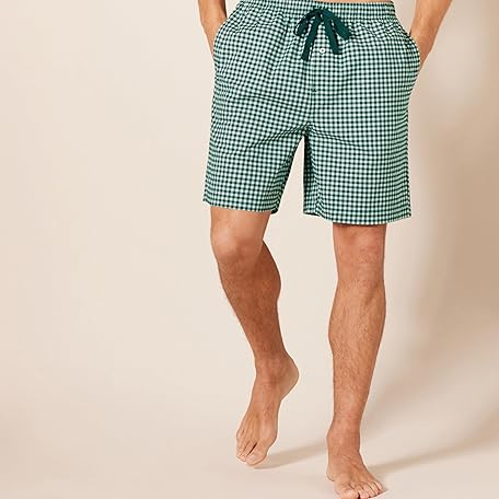 • Amazon Essentials Mens Cotton Stretch Poplin Pyjama Shorts 2 Pack