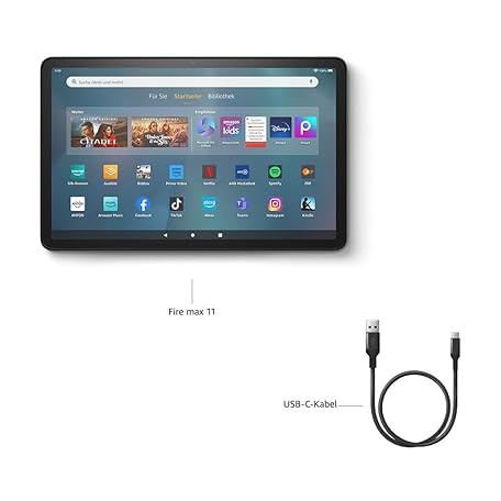 • Amazon Fire Max 11-Tablet (Neueste Generation), unser bisher leistungsstärkstes Tablet, mit klarem 11-Zoll-Display, Octa-Core-Prozessor, 4 GB RAM, 14 Std. Akkulaufzeit, 64 GB, grau, mit Werbung