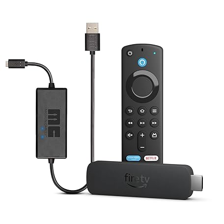 Amazon Fire TV Stick 4K, with support for Wi-Fi 6 and streaming in Dolby Vision/Atmos and HDR10+ and Mission USB power cable