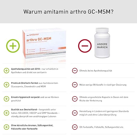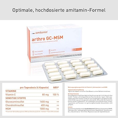 Sản phẩm amitamin arthro GC MSM Glucosamine & Chondroitin & MSM Plus Vitamin C | 120 Capsules | Pharmacy Quality | Individually Hygienically Packed | No Unnecessary Additives | Made in Germany đang được bán với giá ưu đãi là $25.288 tại nước Đức.