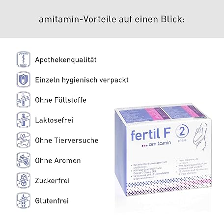 Sản phẩm amitamin Fertil F Phase 2, 120 Capsules, for Pregnancy and Breastfeeding, Premium Complex Formula of Folate, Folic Acid, Omega-3 Fatty Acids DHA and EPA and 24 Micronutrients đang được bán với giá ưu đãi là $27.7405 tại nước Đức.