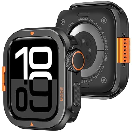Amizee Metall Hülle Kompatibel für Apple Watch Series 11/10 46mm mit Rückseite, Robuste Schutzhülle der Stoßstange für iWatch 46mm, Schwarz