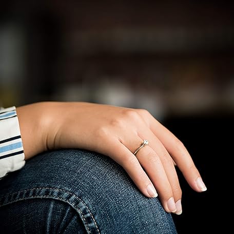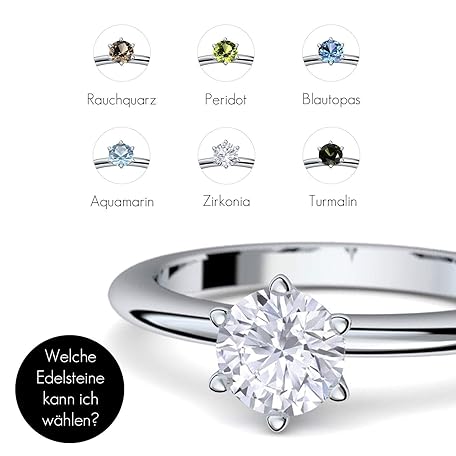 Amoonìc Engagement Ring Silver 925 White Gold 585 750 Personalised + Case with Individual Engraving Women's Ring Marriage Proposal Solitaire Ring Cubic Zirconia Aquamarine Tourmaline Blue Topaz Peridot Smoky Quartz