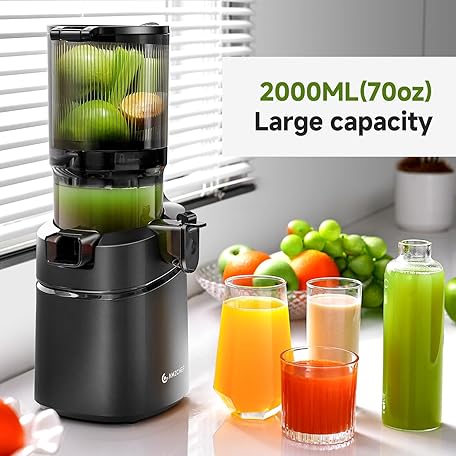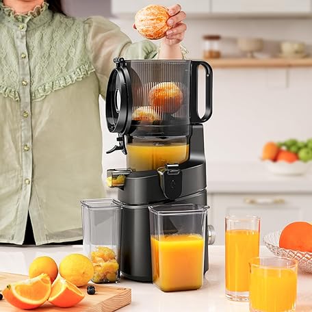 Thông tin sản phẩm AMZCHEF 250 W Automatic All-In-One Juicer, 145 mm Opening and 1.8 L Juicer for Vegetables and Fruits, Juicer Slow Juicer Test Winner with Triple Filter - Black