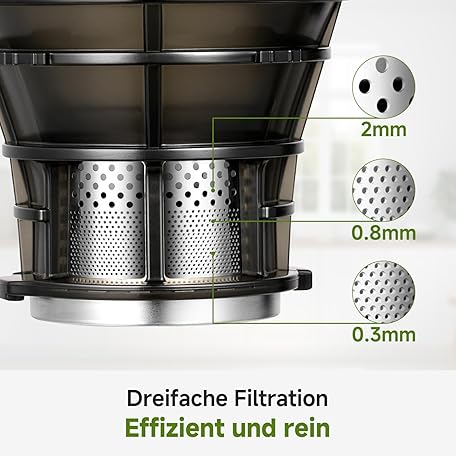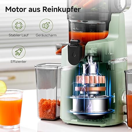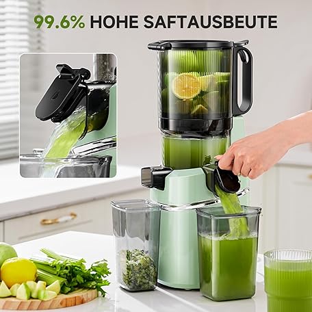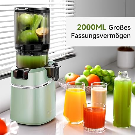 Thông tin sản phẩm AMZCHEF Automatic All-in-One Juicer, 145 mm Opening and 2 L Juicer for Vegetables and Fruits, 250 W Juicer Slow Juicer Test Winner with Triple Filter - Green