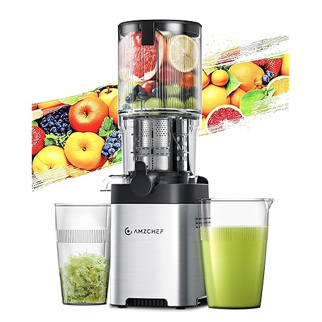 Sản phẩm AMZCHEF Juicer - Slow Juicer with 135 mm Width and Larger Feeding Tube for Whole Vegetables and Fruit - Easy to Clean Juicer with 2 Glasses - Silver đang được bán với giá ưu đãi là $119.6602 tại nước Đức.