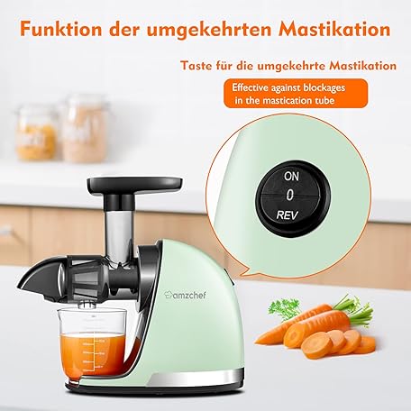 Sản phẩm AMZCHEF Juicer Vegetable and Fruit - Juicer Slow Juicer with Reverse Chewing Function - Delicate Chopping without Filtering - Electric with Brush and 2 Cups - Green đang được bán với giá ưu đãi là $94.4812 tại nước Đức.