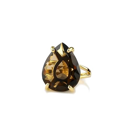Anemone Jewellery 14k Gold Rings for Women - Faceted Smoky Quartz Ring in 14K Gold Filled Band - Charming Statement Jewellery for Women - Free Gift Box