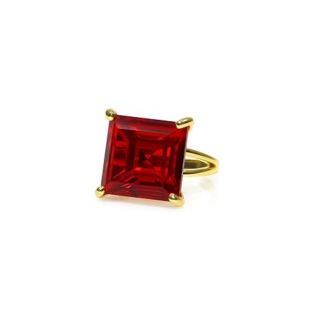 Anemone Jewellery Square Ruby Ring - Fashionable Statement Large Rings - Custom Stone Ring, Birthstone Ring, Gemstone Rings for Women - Choose Your Material and Ring Size