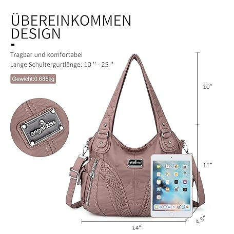 Sản phẩm Angel Kiss Handbag Women's Shoulder Bag Multifunctional Shoulder Bags Waterproof PU Vegan Leather with Zip Closure Pockets, Pink (pink 3), Utility đang được bán với giá ưu đãi là $64.1901 tại nước Đức.