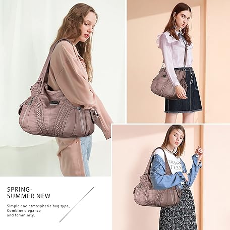 Thông tin sản phẩm Angel Kiss Handbag Women's Shoulder Bag Multifunctional Shoulder Bags Waterproof PU Vegan Leather with Zip Closure Pockets, Pink (pink 3), Utility