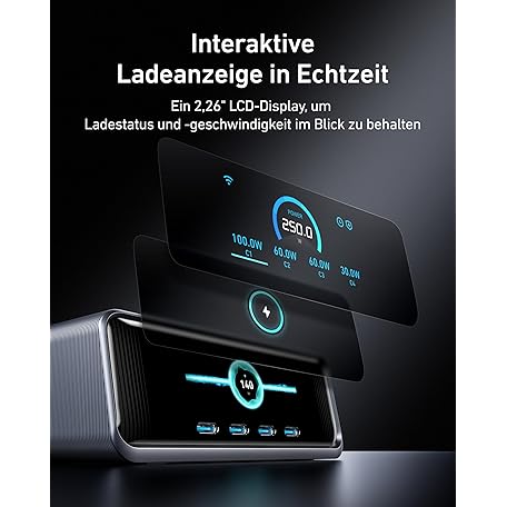 Sản phẩm Anker Prime 250 W USB-C Charger, Ultra-Fast 6-Port GaN, 6 cm LCD Display, Smart Control Controller, Compatible with MacBook Pro/Air, iPhone 16/15/14, Pixel, Galaxy, Apple Watch & More đang được bán với giá ưu đãi là $150.7688 tại nước Đức.