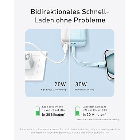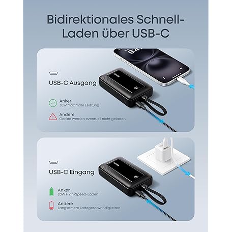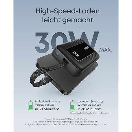 Sản phẩm Anker Zolo Power Bank, 10,000 mAh 30 W High-Speed Portable Charger with Integrated USB-C Cable, Quick Charge Battery Pack for iPhone 15 Models, MacBook, Galaxy, iPad and More đang được bán với giá ưu đãi là $34.5421 tại nước Đức.