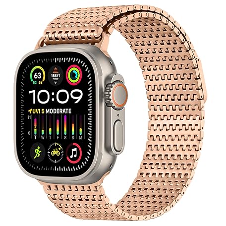 Anlinser Kompatibel mit Apple Watch Armband 49mm 46mm 45mm 44mm 42mm, Magnetische Metallersatzbänder Kompatibel mit Apple Watch Ultra 2 Ultra Series 10 9 8 7 6 5 4 3 SE (49mm/Ultra, Roségold)