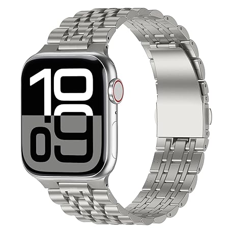 • Anlinser Metallarmband Kompatibel mit Apple Watch Armband 49mm 46mm 45mm 44mm 42mm 41mm 40mm, Verstellbares Edelstahlarmband für iWatch Ultra 3/2/1 Serie 11 10 9 8 7-1 SE (42/41/40/38,Titan)