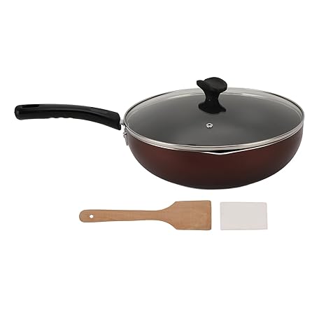 Antihaftbeschichtete Pfanne mit Deckel, beschichtete Rührpfanne, langlebiges multifunktionales Kochgeschirr für die Hausmannskost, Eisen-Verbundholz für professionelle Köche und (Stil 1 (130 x 52 cm
