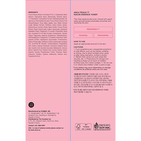 Thông tin sản phẩm ANUA Peach 77 Niacin Essence Toner 250ml/Facial Brightening Toner, Niacinamide, Panthenol, Ceramide, Face Toner for Glass Skin, Korean Skin Care (8.45 fl.oz.)