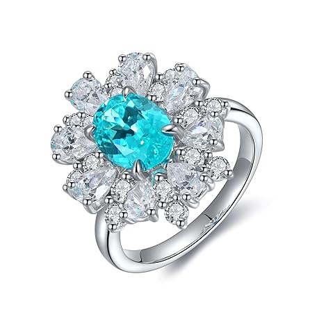 Aotiwe Delicate Engagement Friendship Rings, Luxurious Oval Laboratory Tourmaline Floral Design 2.6ct with Round Moissanite Waterdrop Design White Gold