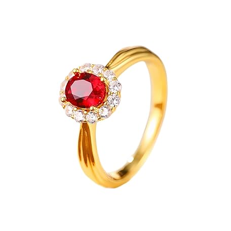 Aotiwe Ring Damen Zart, Verlobungsring Damen Dünn Ovaler Laborrubin im Vintage-Blumendesign mit 4 Zinken, 1,2 Ct, mit Rundem Moissanit Gelbgold
