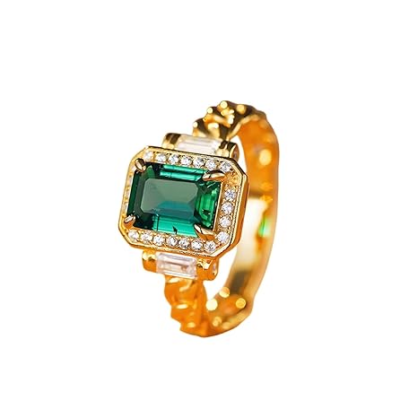 Aotiwe Ring Frauen Minimalistisch, Verlobungsringe Damen Luxuriöses Kettendesign, Rechteckiger Labor-Smaragd, 1,5 Ct, mit Moissanit Gelbgold