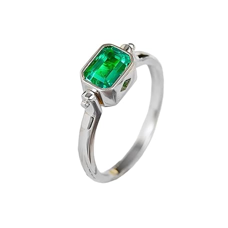 Aotiwe Ringe Frauen Daumen, Promise Ring Beste Freundin mit Elegantem Drehbarem Rechteckigen Solitär-Laborsmaragd 1 Ct Gelbgold