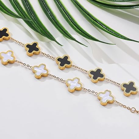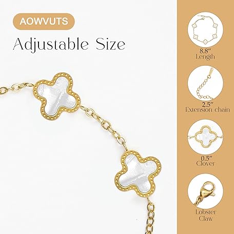 Thông tin sản phẩm AOWVUTS 2 Piece Bracelet Women's Gold Four Leaf Clover Bracelet Set 18 Carat Gold-Plated Bracelet Stainless Steel Adjustable Lucky Charm with Clover Gold Jewellery Gift for Women Girls, Stainless