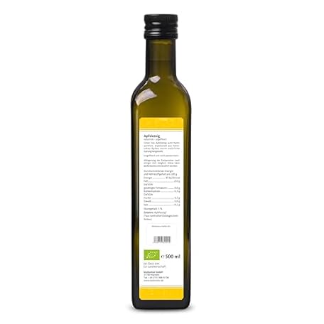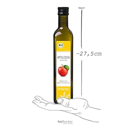 Thông tin sản phẩm Apfelessig naturtrüb BIO 1000ml (2x 500ml) I rein, unverarbeitet, unpasteurisiert I Apfelessig ungefiltert mit Essigmutter von bioKontor