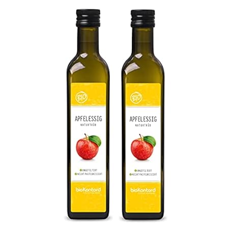Sản phẩm Apfelessig naturtrüb BIO 1000ml (2x 500ml) I rein, unverarbeitet, unpasteurisiert I Apfelessig ungefiltert mit Essigmutter von bioKontor đang được bán với giá ưu đãi là $20.2195 tại nước Đức.