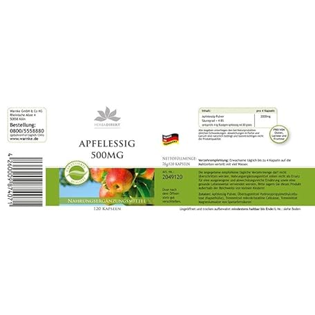 Sản phẩm Apple Cider Vinegar Capsules - 500mg - Acidity 4-8% - 120 Capsules - Vegan | HERBADIREKT by Warnke Vitalstoffe - German Pharmacy Quality đang được bán với giá ưu đãi là $19.2167 tại nước Đức.