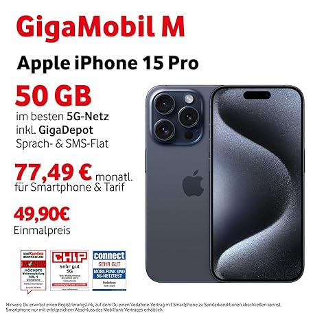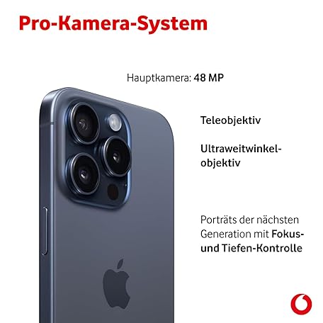 Thương hiệu Vodafone là cái tên nổi tiếng được rất nhiều khách hàng trên thế giới chọn lựa. Với kiểu dáng đẹp mắt, sang trọng, sản phẩm Apple iPhone 15 Pro mit Vodafone Vertrag | Aktion: 25% Basispreis-Rabatt | 24 Mon. Laufzeit | in Titan Blau | mit 128 GB Speicher là sự lựa chọn hoàn hảo nếu bạn đang tìm mua một món cho riêng mình.