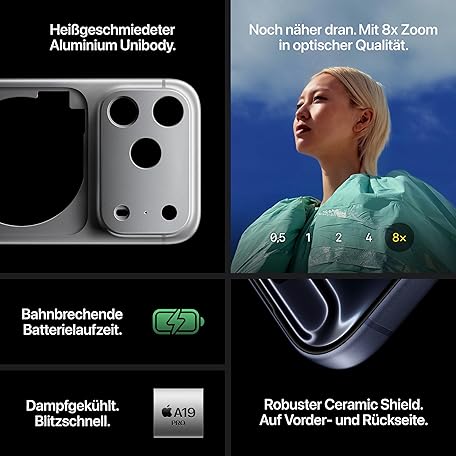 Sản phẩm Apple iPhone 17 Pro 256 GB: 6.3 Inch Display with ProMotion up to 120 Hz, A19 Pro Chip, Breakthrough Battery Life, Pro Fusion Camera System with Centre Stage Front Camera; Deep Blue đang được bán với giá ưu đãi là $1611.456 tại nước Đức.