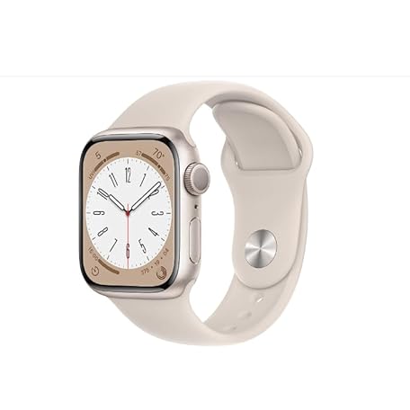 Apple Watch Series 8 (GPS, 41 mm) Starlight Aluminium Case with Starlight Sports Band, One Size (Refurbished)
