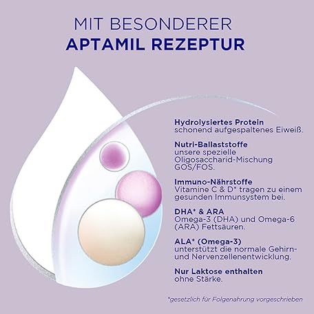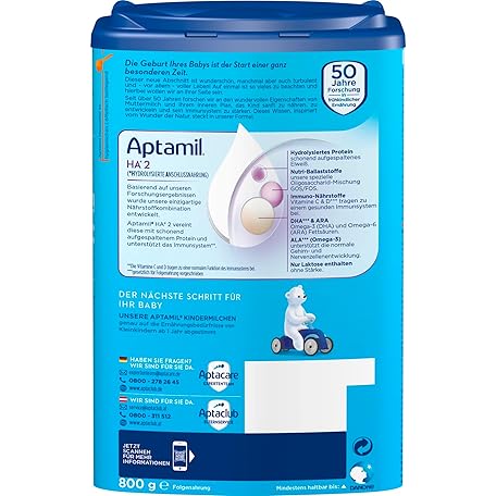 Thông tin sản phẩm Aptamil HA 2 – Anschlussnahrung nach dem 6. Monat, Mit Omega 3 & 6, DHA, ARA & ALA, Nur Laktose, Ohne Palmöl, Babynahrung, Milchpulver, 1x 800g