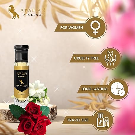 Thông tin sản phẩm Arabian Opulence FR234 BLUSH PEONY, SOFT SUEDE & RED APPLE Roll-on Perfume Oil, Concentrated Perfume Body Oil, Long-Lasting Oil-Based Perfume for Women, Travel Size, Alcohol-Free Bottle (6 ml)