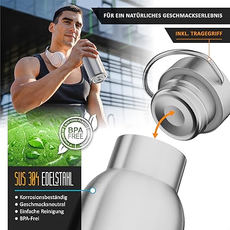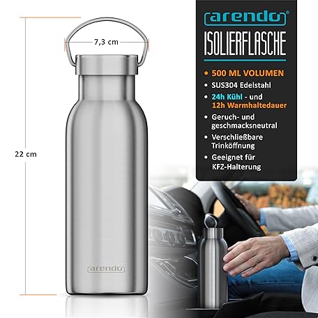 Sản phẩm Arendo - Thermal Insulated Flask Stainless Steel 500 ml - Double Walled Water Bottle - with Handle on the Top - BPA-Free - Leak-Proof - Keep Cool for 24 Hours - Keep Warm for 12 Hours đang được bán với giá ưu đãi là $18.8025 tại nước Đức.