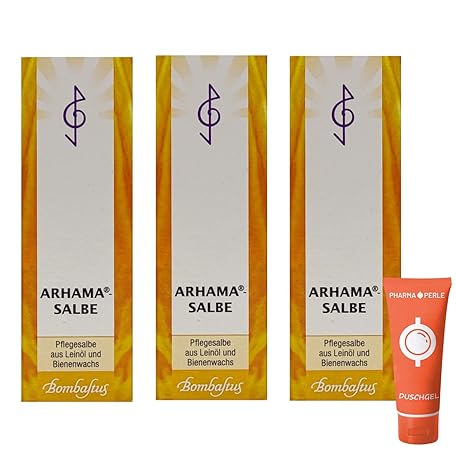 Arhama Salbe, Bombastus 3x 20 ml I Pflegesalbe aus Leinöl und Bienenwachs I Hautregeneration I Feuchtigkeit I Narben I trockene, rissige Haut I 3er Spar-Set plus Pharma Perle give-away
