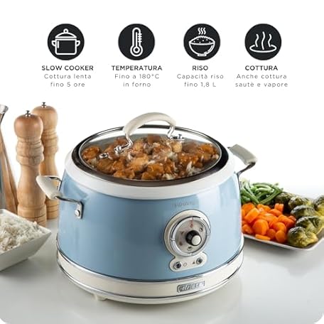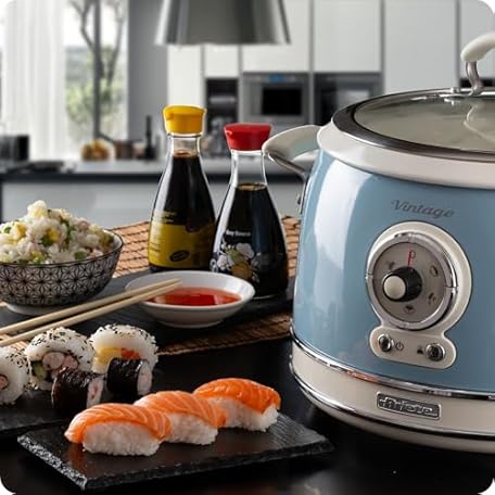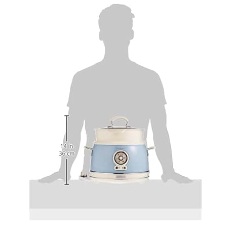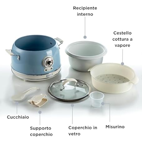 Thông tin sản phẩm Ariete 2904 Rice Cooker, Rice Cooker, Slow Cooker, Steamer, Vintage Line, 3.5L, Non-Stick Ceramic Coating, 650W, Pastel Blue, Sky Blue